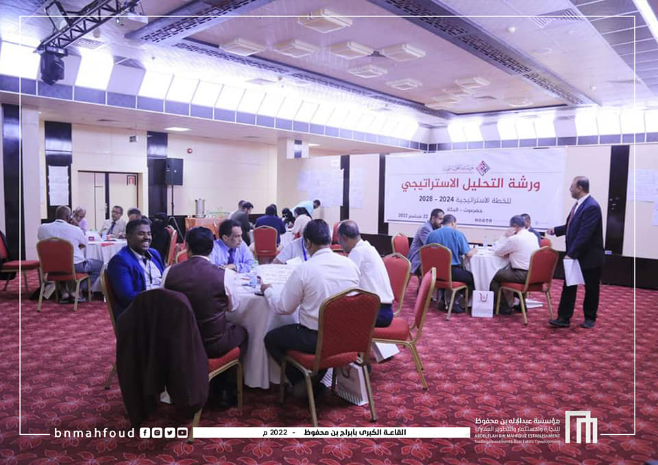 أحتضنت القاعة الكبرى بأبراج بن محفوظ تحتضن ورشة عمل بعنوان : التحليل الاستراتيجي للخطة الاستراتيجية 2024 - 2028 م التي نظمتها مؤسسة العون للتنمية