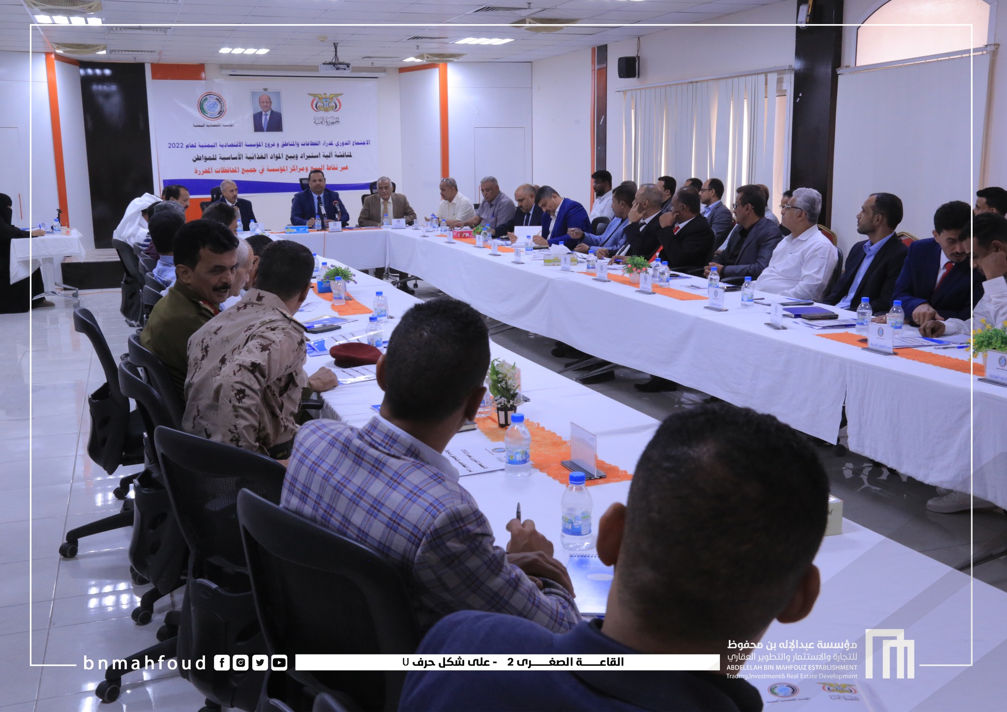 بحضور المدير العام للمؤسسة الاقتصادية اليمنية العميد سامي السعيدي، القاعة الصغرى 2 بأبراج بن محفوظ تحتضن الاجتماع الدوري لمديري القطاعات والمناطق وفروع المؤسسة الاقتصادية للعام 2022م، لمناقشة آلية استيراد وبيع المواد الغذائية الأساسية للمواطنين عبر نقاط البيع ومراكز المؤسسة في جميع المحافظات المحررة .